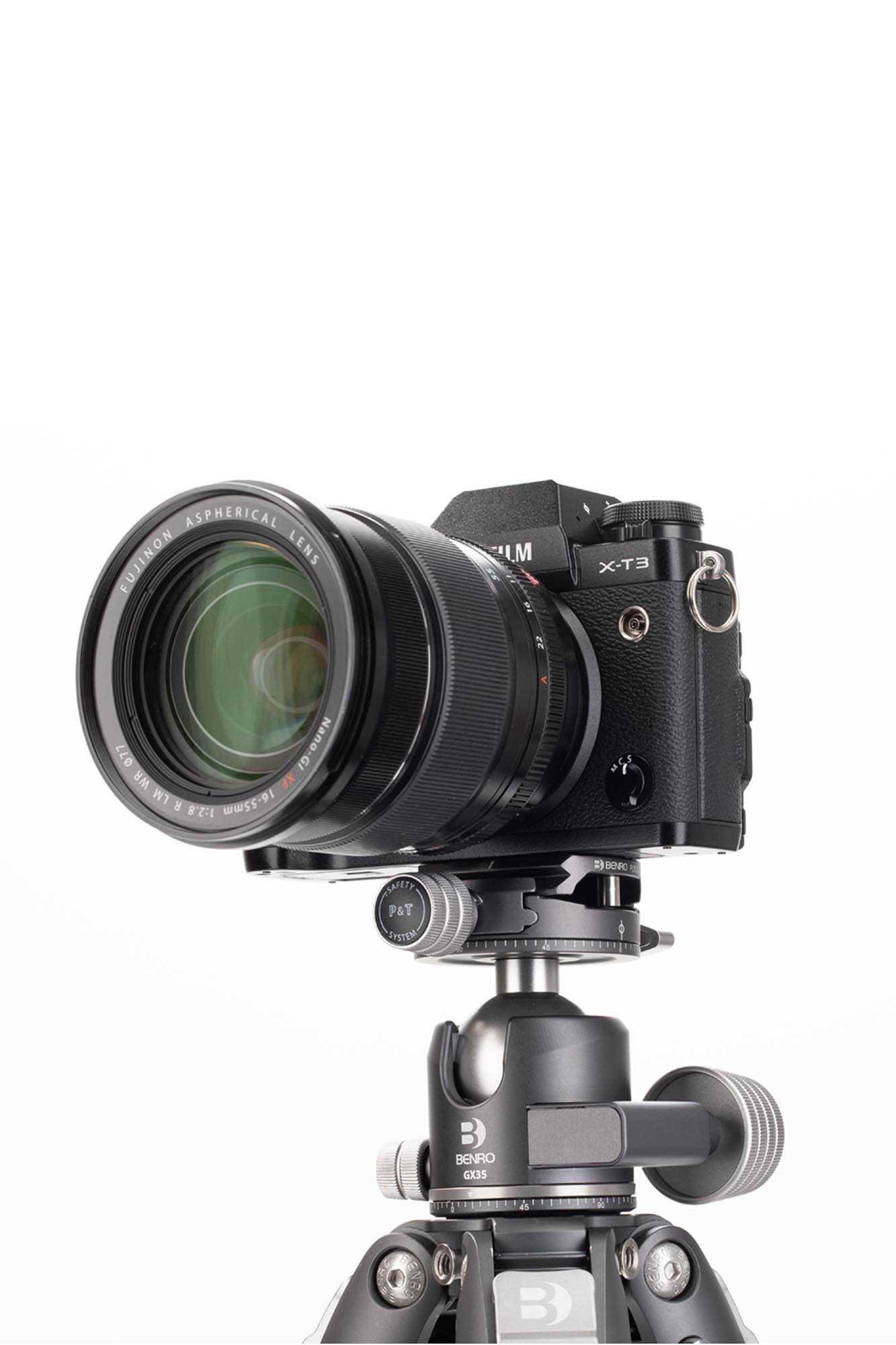 Ook aan de veiligheid is gedacht. De snelwisselplaat heeft twee schroeven aan de onderzijde die er voor zorgen dat de camera – bij een licht geopende klem – niet van het balhoofd af kan schuiven. Daarnaast heeft de klem het zogenaamde Pull&Twist-functie; om de klem helemaal los te kunnen draaien, moet je ook aan de knop trekken. Dus je als je een keer per ongeluk de knop open draait, kan de snelwisselplaat er nog steeds niet uit. Extra veilig dus!