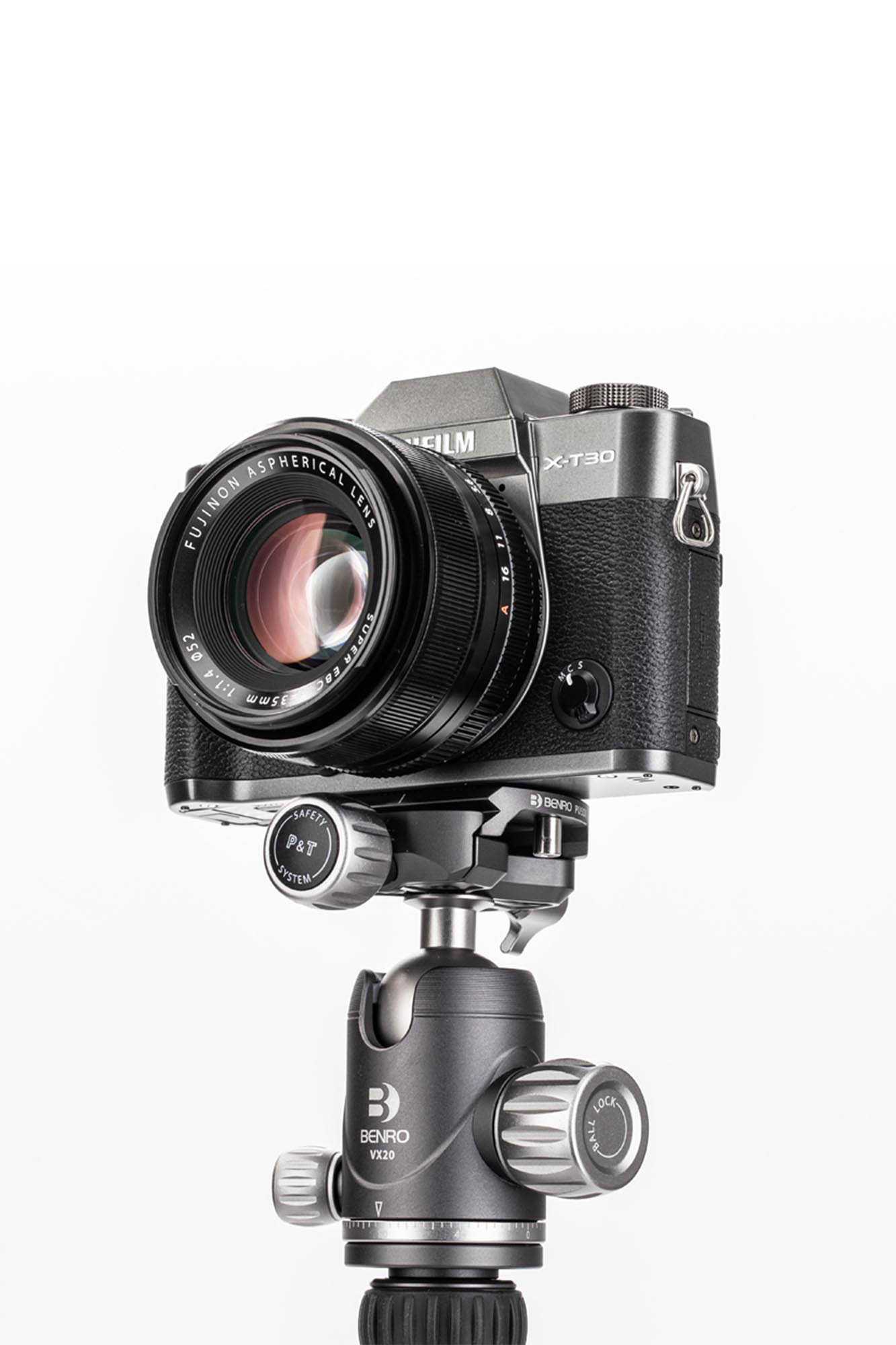 Ook aan de veiligheid is gedacht. De snelwisselplaat heeft twee schroeven aan de onderzijde die er voor zorgen dat de camera – bij een licht geopende klem – niet van het balhoofd af kan schuiven. Daarnaast heeft de klem het zogenaamde Pull&Twist-functie; om de klem helemaal los te kunnen draaien, moet je ook aan de knop trekken. Dus je als je een keer per ongeluk de knop open draait, kan de snelwisselplaat er nog steeds niet uit. Extra veilig dus!