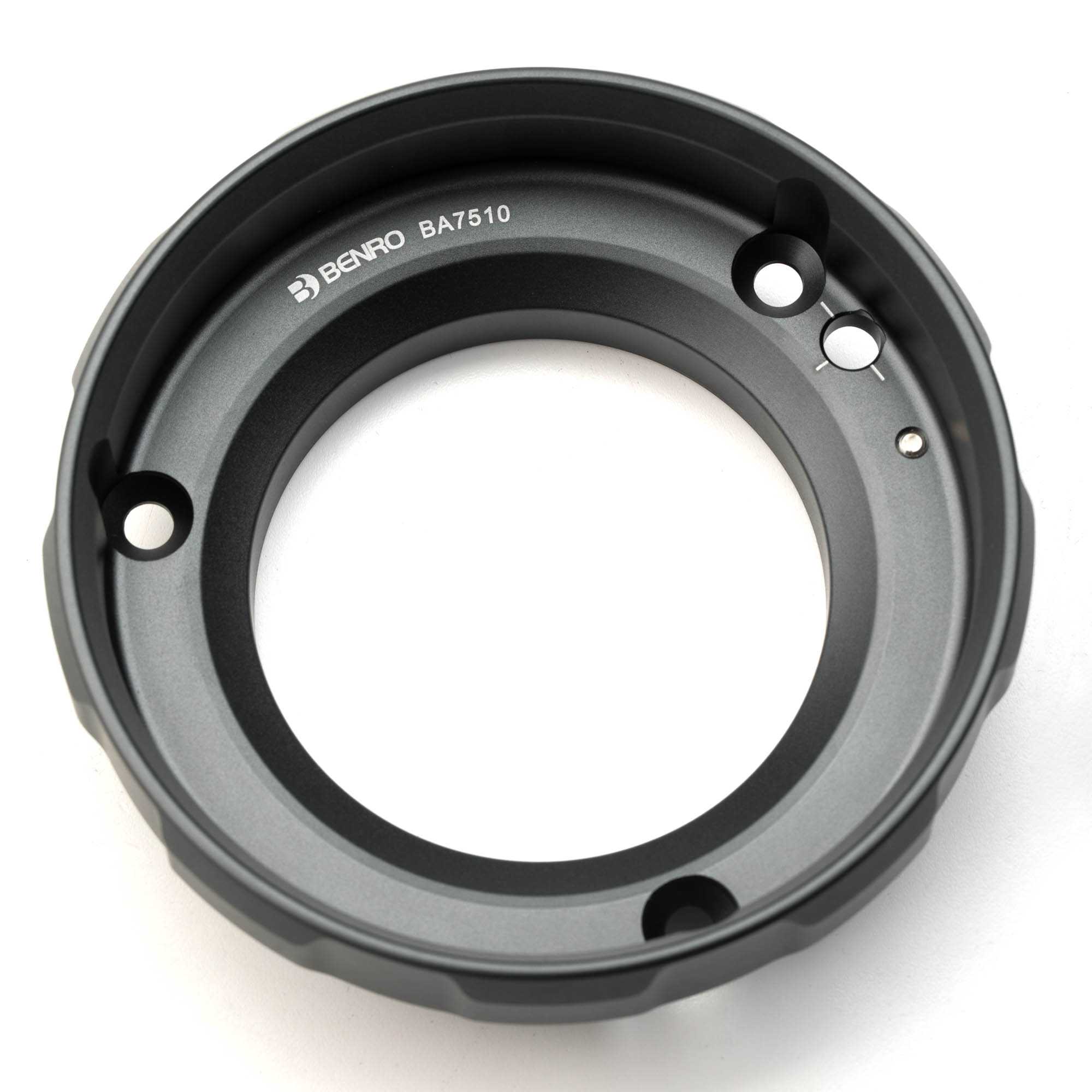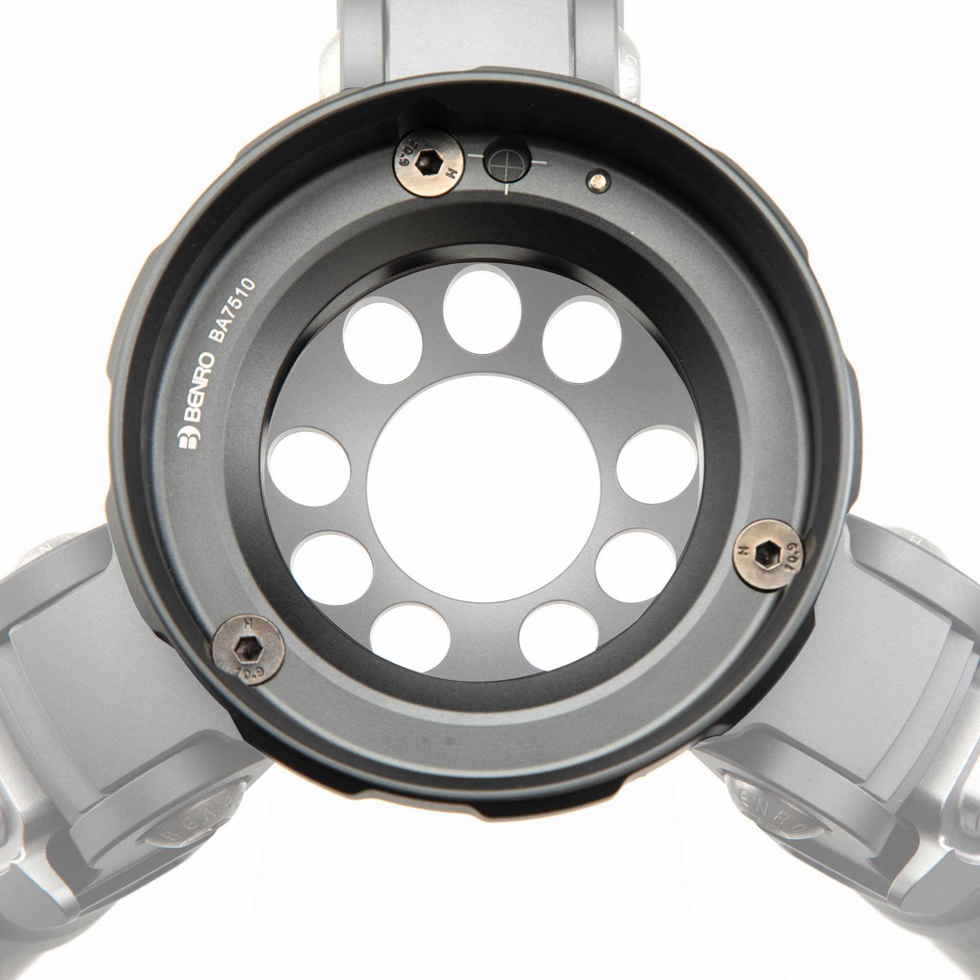 Een 100mm bowl adapter waarmee je (video)koppen met een 100mm half ball op jeen Benro Mammoth-statief kunt monteren.