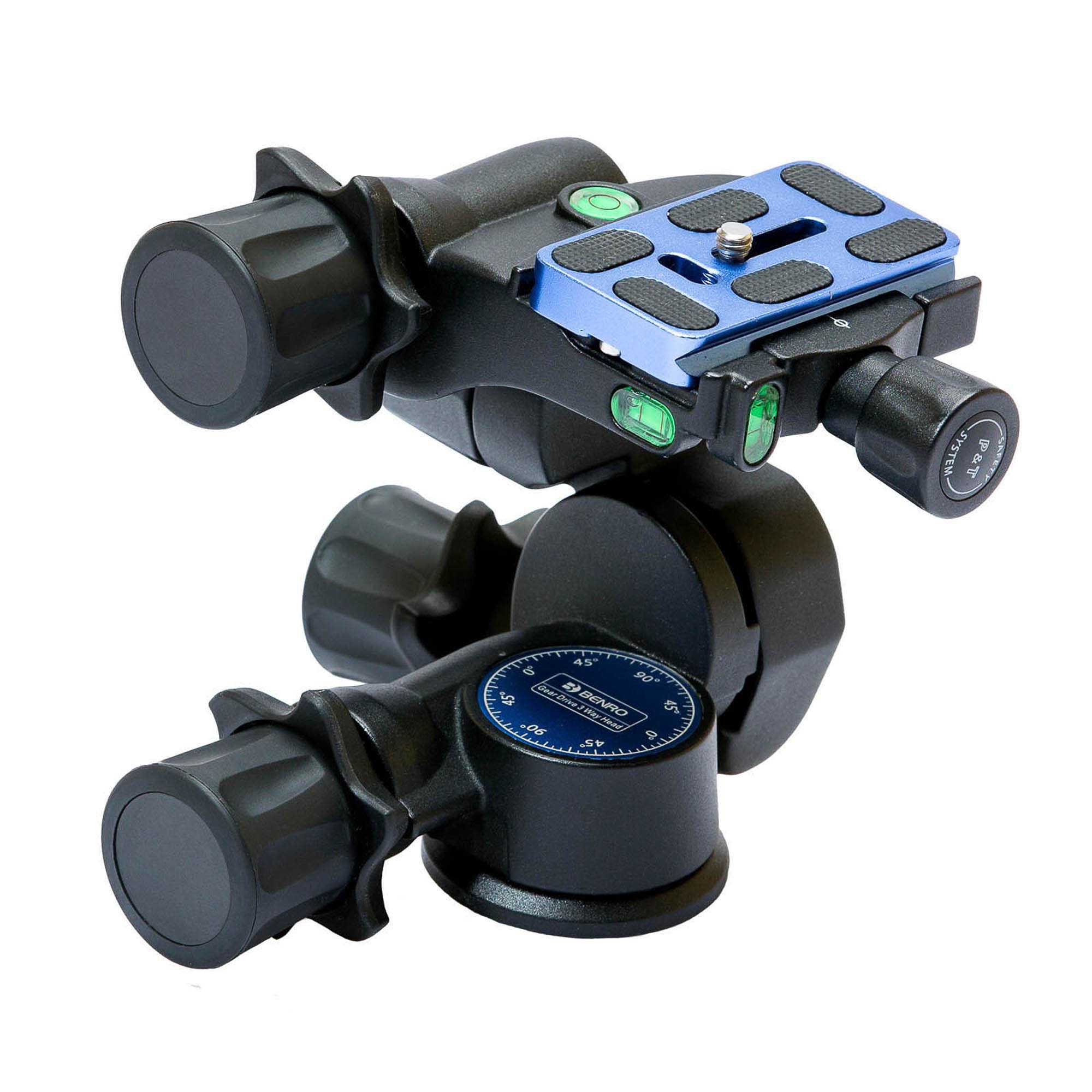 Geared head drieweg statiefkop