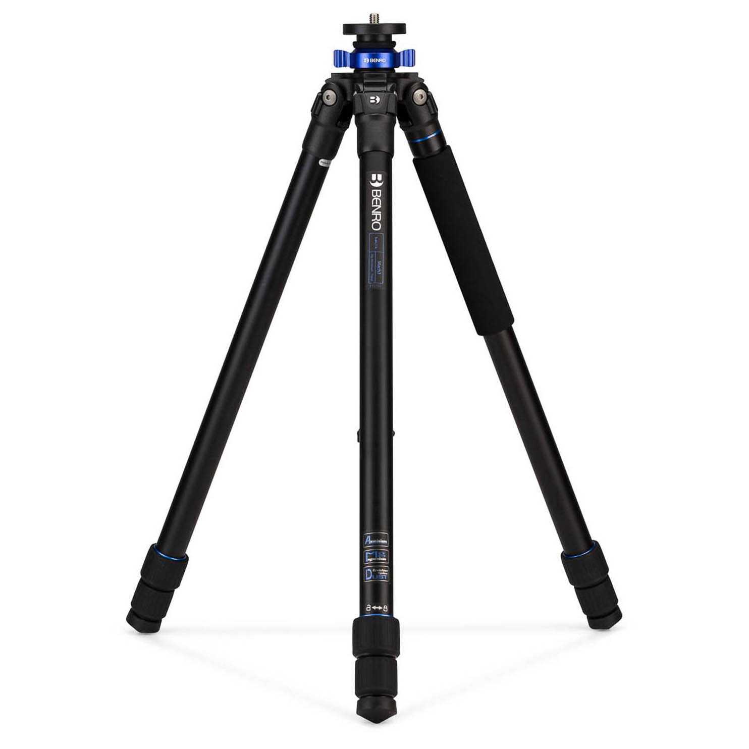 Deze Mach 3 is uitgevoerd in aluminium. De spider is van het lichte en sterke magnesium. Door het gebruik van deze materialen, in combinatie met het beproefde ontwerp, is de Mach 3 stevig maar toch niet zwaar en geschikt voor de meest uiteenlopende fotografiestijlen. De herkenbare blauwe draaisluiting voor het vastzetten van de middenkolom is uitgevoerd in licht aluminium waardoor de middenkolom in iedere positie stevig vergrendeld wordt.